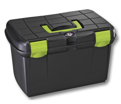 Grooming box for tools with plastic inner tray. Grooming box with removable inner tray, and brush holder. Also serves as stool (up to 100 kg). Dimensions: h 25 x l 40 x p 22 cm.