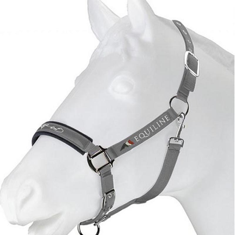 Double nylon Nabuk covered halter EQUILINE, very strong with double settings and sprin clip, with rope.