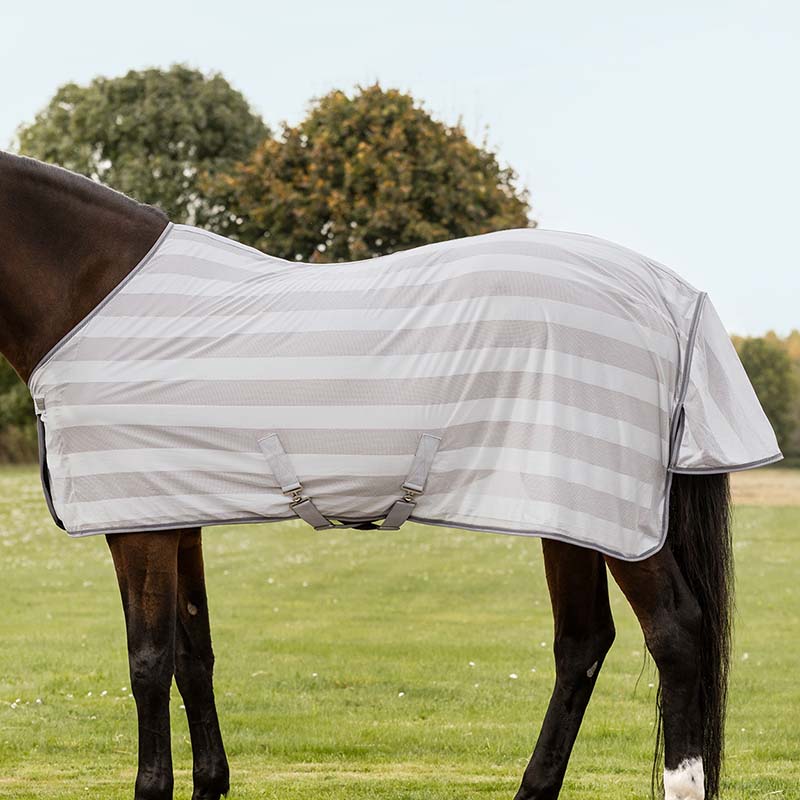 Lightweight and breathable fine mesh fly sheet from the Waldhausen Economic line, providing protection against flies and annoying insects during the warm season. The Waldhausen Economic fly sheet is the perfect solution to shield your horse from flies, mosquitoes, and horseflies in spring and summer. Made from an ultra-lightweight fabric, it allows sweat to evaporate while keeping biting and flying insects at bay. Equipped with adjustable cross surcingles to ensure a perfect fit for every horse’s conformation, along with a secure front closure. The Economic fly sheet protects the horse’s body from insect bites and includes an additional tail cover. Thanks to the hind leg straps, the sheet stays securely in place, even when the horse moves in the paddock or outdoors.
