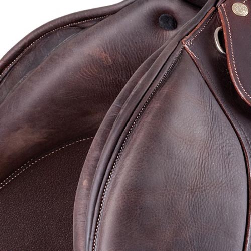 Jumping saddle Pariani model Oxer. Oxer Pariani jumping saddle made of oiled leather, the leather is tanned with natural method to ensure maximum softness and comfort. The pre-formed cushion padded with felt and polyurethane foam provides maximum contact with the horse, adapting and modeling itself perfectly to the structure of each horse, while the short supports allow optimal freedom of movement and provide a very valuable support during the jump. Medium deep seat. Fixed chamber opening withers, medium size.