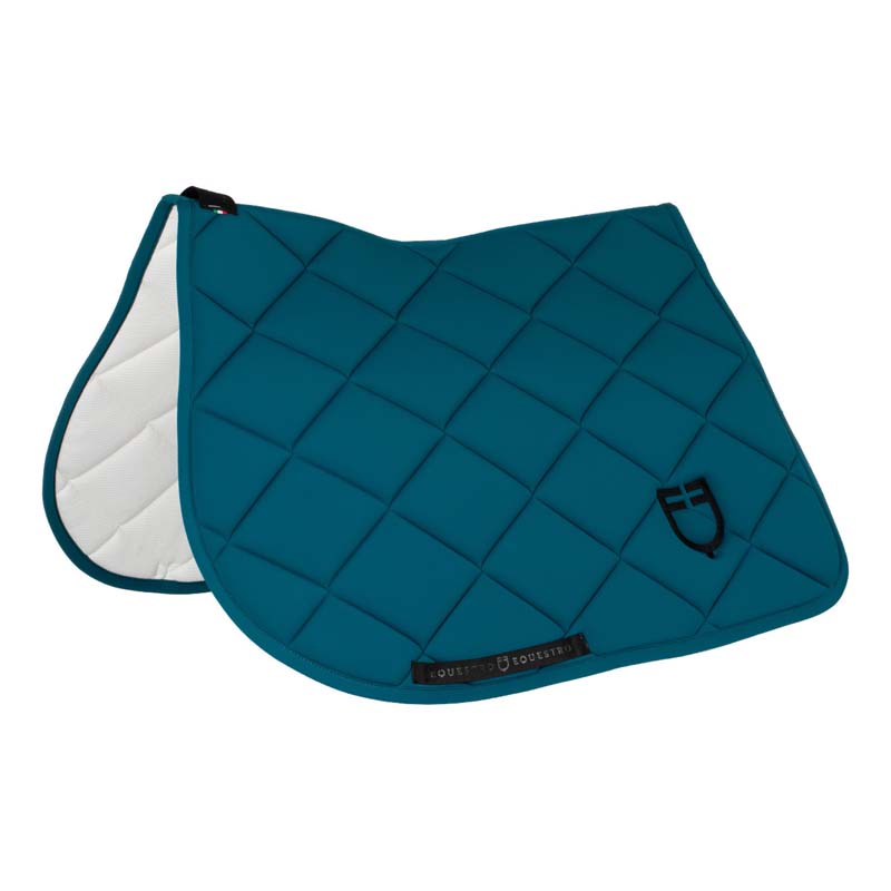 The Equestro GP English saddle pad in padded technical fabric offers comfort, stability and breathability. The honeycomb inner lining enhances sweat evaporation, keeping the horse’s back cool and dry. Available in various colors with contrasting embroidery (white or black).